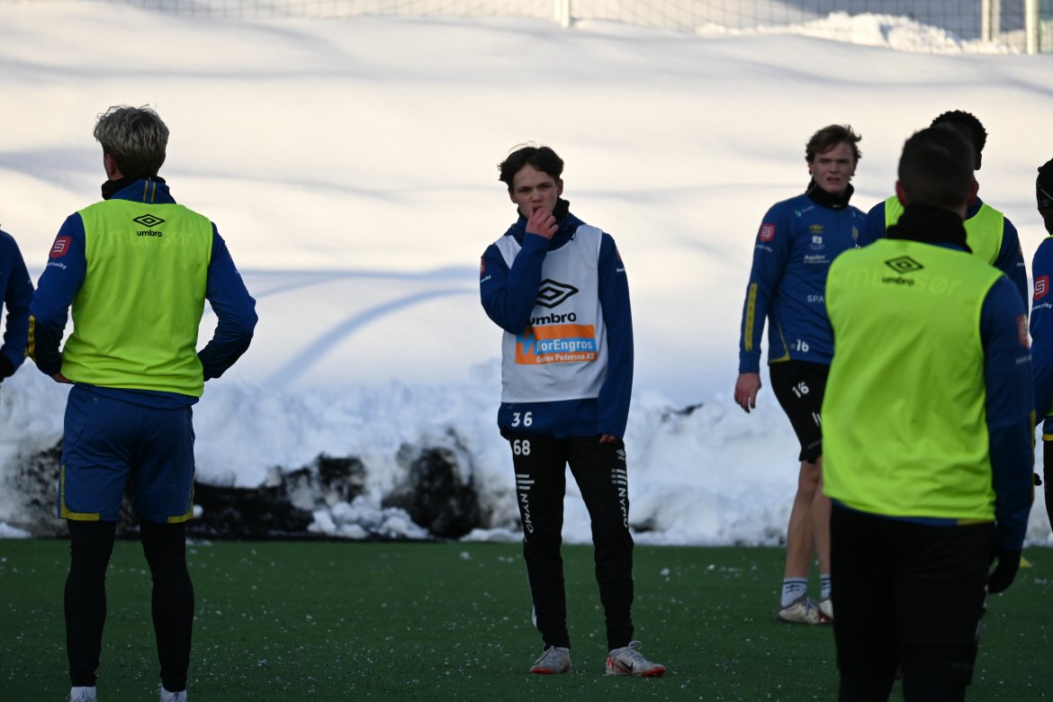 Med måkt bane og undervarme på, ble årets første fotballøkt gjennomført ute på Levermyr kunstgress, i dag 19. januar.
