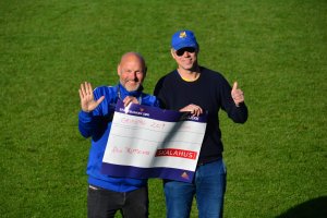 Der satt ballen midt i Skalahus-challenges-målet. Svein Roger Egge ble årets første som klarte å plassere ballen midt i blinken.